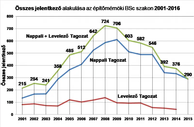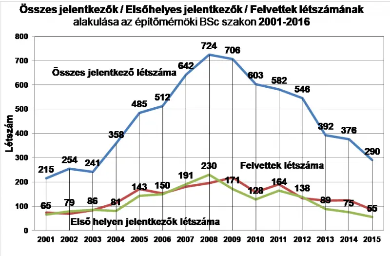 | A Debreceni Egyetemen folyó építőmérnök képzésre felvettek alakulása | A Debreceni Egyetemen folyó építőmérnök képzésre jelentkezők és a felvettek alakulása |