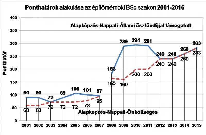 | A Debreceni Egyetemen folyó építőmérnök képzés ponthatárainak alakulása | Az Építőmérnöki Tanszék által gesztorált jelenleg futó szakok aktív hallgatói létszámai |
