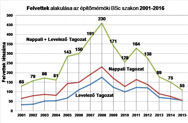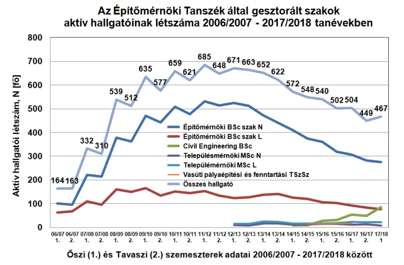 2014-ben szerkezet-építőmérnöki ágazaton történő beindítása. A hallgatói létszámok alakulását bemutató és elemző ábrák alapján a képzés bázisát jelentő Építőmérnöki Tanszék véleménye szerint a számos társadalmi és gazdasági folyamatra visszavezethető hallgatói létszámcsökkenés az angol nyelvű képzés kiszélesítésével, további szakirányok indításával, a hallgatói létszám felfuttatásával eredményesen ellensúlyozható. Tekintettel az új KKK adta lehetőségekre az angol nyelvű képzés jelenlegi specializáció kínálatát a hallgatói érdekek szem előtt tartásával a jövőben a magasépítési specializáción (Structural Engineering Specialization) valamint a vízi közmű és vízi környezeti specializáción (Water & Environmental Engineering Specialization) is indítani szeretnénk.