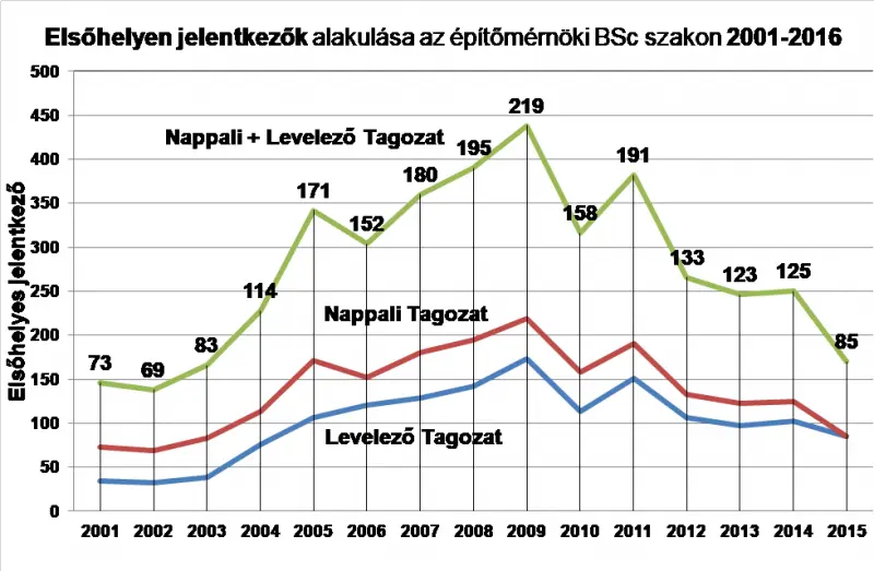 Első helyen jelentkezők alakulása a Debreceni Egyetemen folyó építőmérnök képzésre |