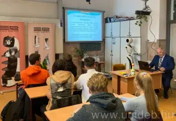 A szociális robotok fejlesztésében rejlő lehetőségekről, a Debreceni Egyetem (DE) Műszaki Karának (MK) elkövetkező éveit meghatározó kutatási területről tartott előadást április 7-én a Fazekas Mihály Gimnáziumban Korondi Péter professzor a MTA Debreceni Akadémiai Bizottság Műszaki Szakbizottsága és a DE MK Mechatronikai Tanszék szervezésében.