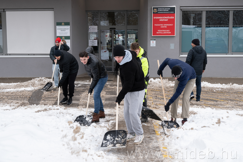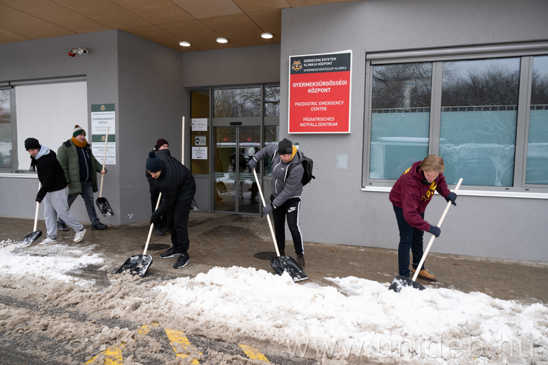 A DEHÖK tagjai havat lapátolnak